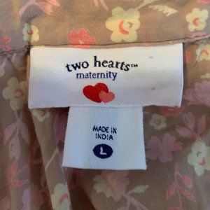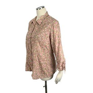 Two Hearts Maternity Large Button Front Blouse Pink Floral 3/4 Sleeves