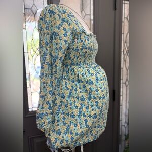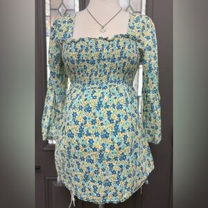 Two Hearts Maternity Lightweight Floral Smocked Top with Long Sleeves Size Large