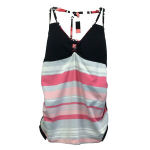 Two Hearts Maternity Tankini Swim Top Womens Size M Multicolored Striped Ruching
