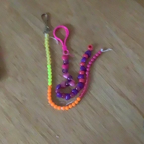 Homemade from string + beads. 12” = metal clasp; 10” = plastic clasp.