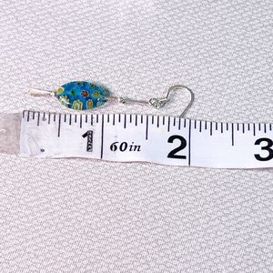 Two Inch Drop Sterling Silver Blue Millefiori Carnaval Earrings 2” Long