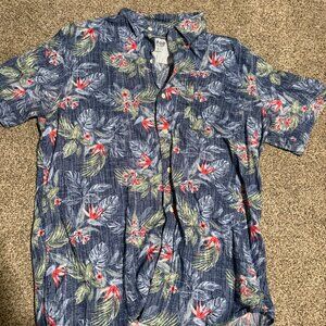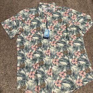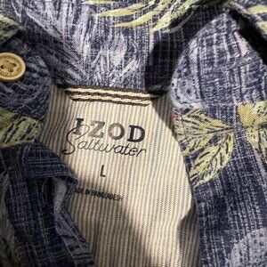 Two Izod Saltwater Hawaiian button up short sleeve shirts Size Large