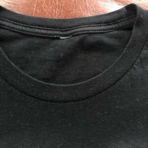 Black slim fit TShirt with size tag removed. 26.5” from shoulder to hem and 16.5” from armpit to armpit.