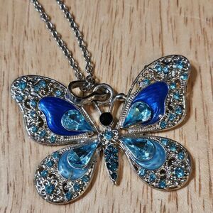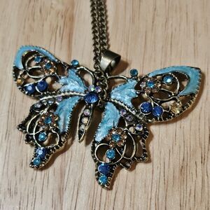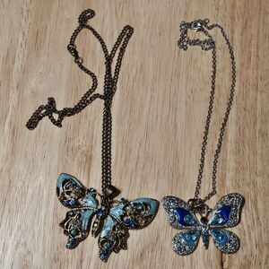Both butterflies are in good condition and have vivid jewels that make these necklaces stand out and sparkle when worn. Please see photos for butterflies design.