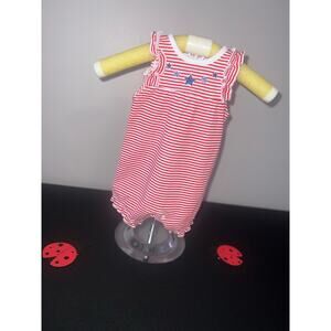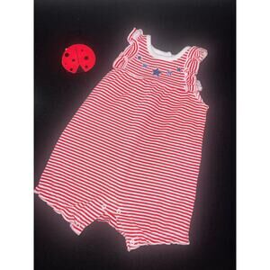 This listing includes two adorable jumper outfits. These are perfect for the summer. These jumpers are a size 6M and are true to size. They are in perfect condition; worn once.