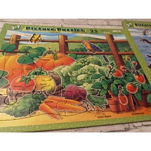 Excellent shape. Two puzzles,one garden themed and one puzzle of whales. Twenty five pieces each. From 1999.