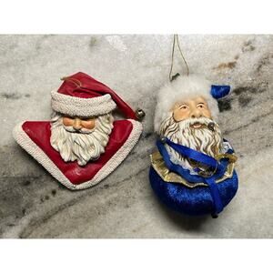 Two Large Santa Face Christmas Tree Ornament Ornaments Retro Style