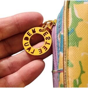 Two Lilly Pulitzer for Estee Lauder PINK Floral Cosmetic Bag Gold Trim Travel. Very Good Pre-Owned Condition