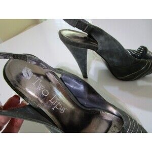 * Two Lips Womens Pumps Size 6 Green Silver Velour Peek A Boo Toe Heels