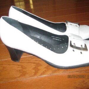 Two Lips Women's Size 7 Saucy White Leather Square Toe heels 2.5"