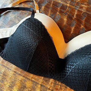 Two Maidenform 36B Lightly Lined Bras With Black Lace & Beige Smooth Finish