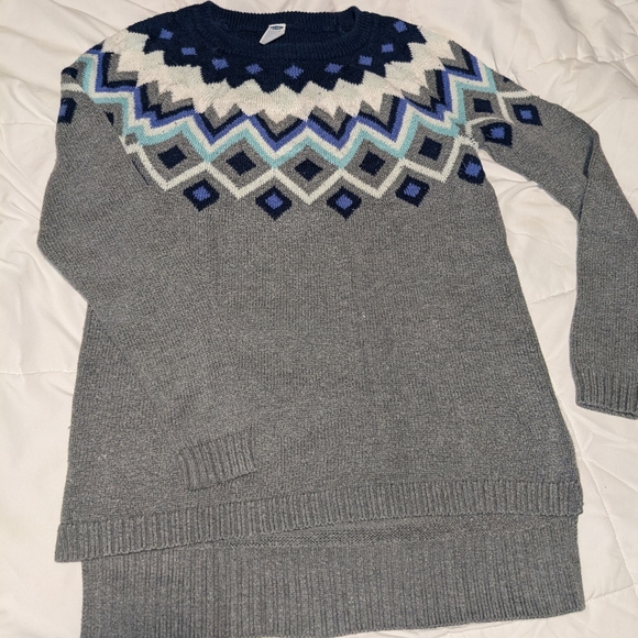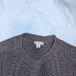 Two maternity sweaters, well loved but still in great shape. Brown one from Gap is an XS, gray/blue is a S.