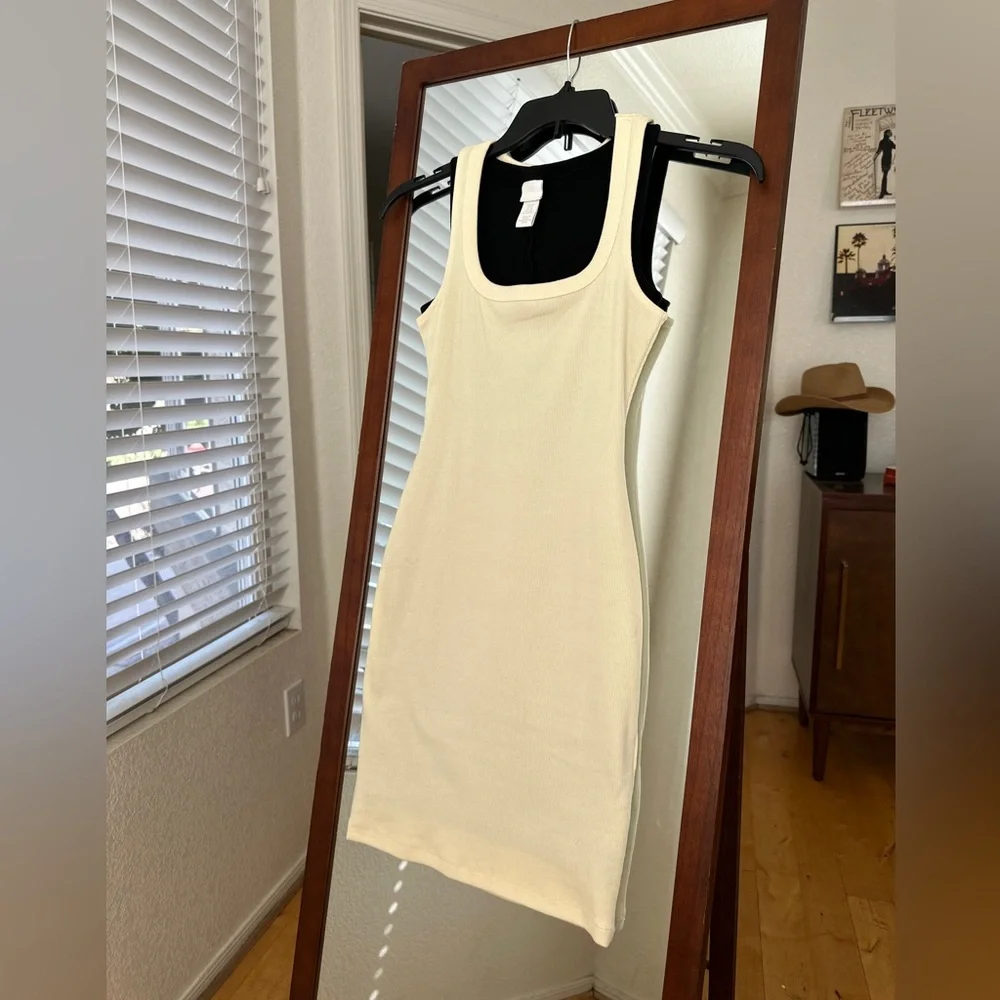 Two dresses, one black and one light yellow. Lightweight, ribbed, not see through.