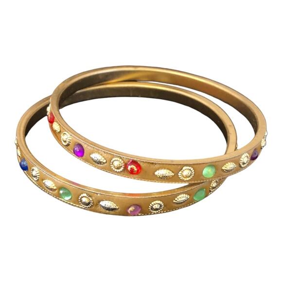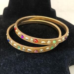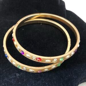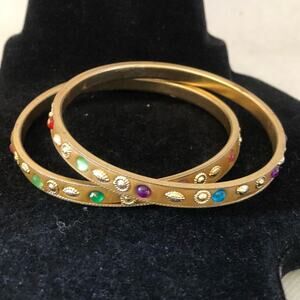 Two Multicolored Rhinestone Gold Stones Bangle Bracelets