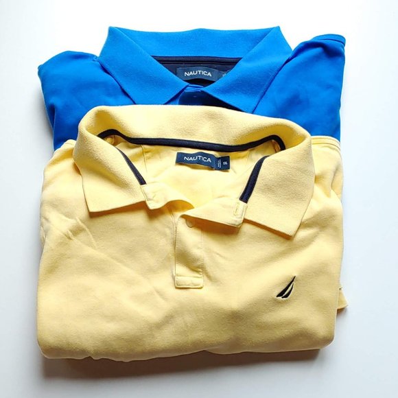 Two Nautica 100% Super Soft Polo Shirts 1 Med. Yellow, 1 Royal Blue. SZ XXL