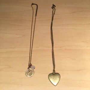 Gold sold heart necklace & the other one says amour in the circle with a few beads around it