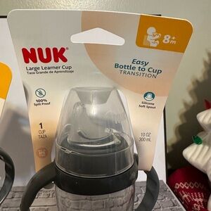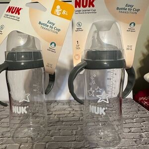 Two New 10 oz Nuk large learner cups - gray and clear