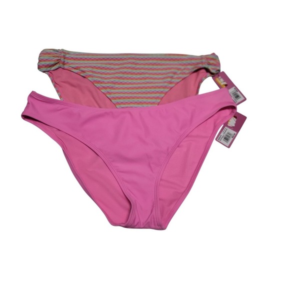 Two Ninety-Nine Bikini Bottoms Striped Ruched Low Rise Swimwear Pink XXL