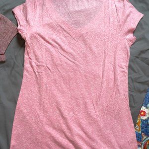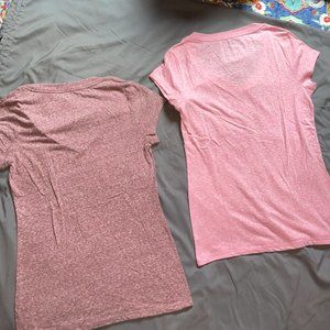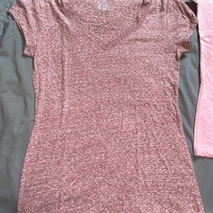 Two No Boundaries v-neck tshirts. One space dyed pink and the other is more of a plum color. I bought these at Mardens in Maine (the reason why the name is croosed out).