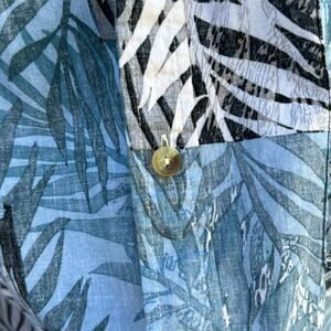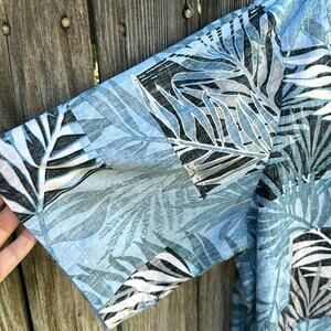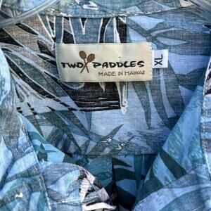Two Paddles Palm Leaves Blue Aloha Button-up Shirt Made in Hawaii Mens Size XL. In goos preowned condition. Measurements are approximate taken flat.