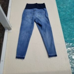 Two Pair Time & Tru Women's Maternity Blue Jeans Size Large (12-14). one pair distressed light blue. one indigo blue