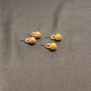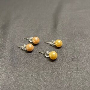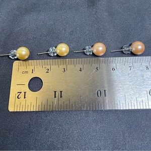 Two Pairs 8MM Pearl Sterling Silver Earrings, Peach and Yellow