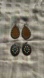 Set of boho teardrop and oval earrings. Features brown and turquoise teardrop design. Silver oval earrings with turquoise, white, and tan accents.