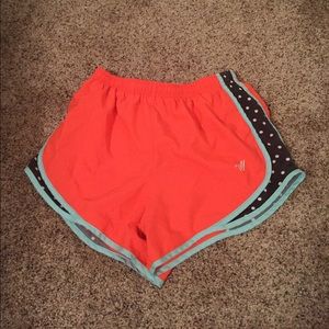 One bright orange pair with aqua trim and black and white polka dot sides, one black pair with white trim and gray sides. One is Varsity brand and the other is Soffe. Both size small. Selling them together :)