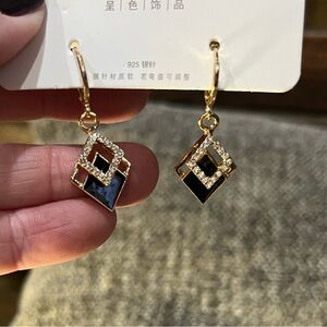 Two Pairs of Black, Gold, and Rhinestone earrings. Brand New!