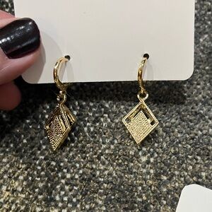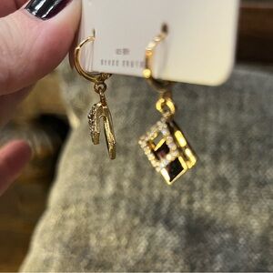 Two pairs of earrings. Gold with black and rhinestone accents. Brand new costume jewelry.