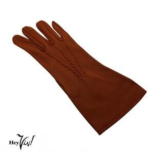Two Pairs of Vintage Gloves 1 Brown 1 Orange Nylon Wrist Length Size 7 - Hey Viv