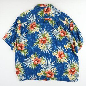 Two Palms Mens Hawaiian Shirt Large Rayon Button Up Blue Tropical Vacation