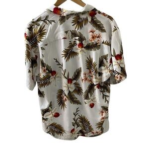 Two Palms Mens Size M 100% Rayon Made in Hawaii White Orchid Printed Shirt