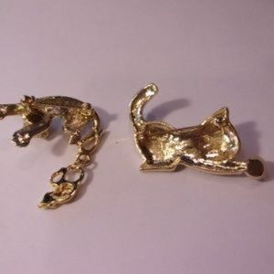 "Two Pave Rhinestone Kitten Cat Brooches "