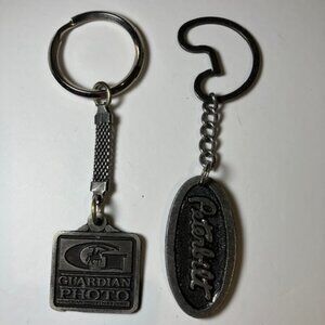 Two Pewter Advertising Key Chains Peterbilt Trucks & Guardian Photo 1.75"-1.25"