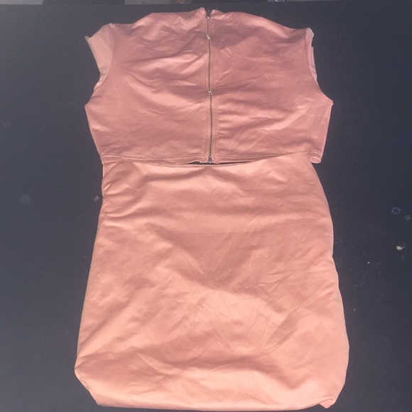 Pink Salmon Longsleeve Two Piece Pencil Skirt Outfit