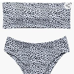 Two Piece Bandeau High Waist Cheeky Bikini Monochrome Spotted Swimsuit
