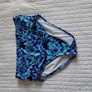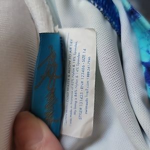 Beautiful Swim Sexy Saltwater Underwire Double Strap Bikini Top and Swim Sexy Saltwater Shirred High Waist Bottoms. The top has adjustable straps with underwire and metal clasp in back. Bottoms are high waisted with coverage in back.