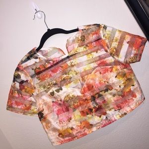 Floral stripe two piece set. Crop top with Midi skirt. Worn once to a bridal shower. Will only sell as a set. Top is S and Skirt is M. Armpit to armpit is 17inches. Waist around is 29inches. Material does not stretch.