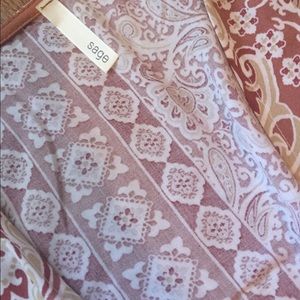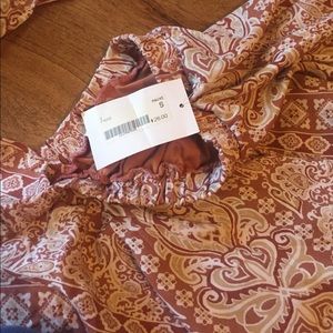 Printed two piece set. Never worn. Tags no longer on the top but never worn. Tags still on shorts. Flowy shorts and tie top. A coral and cream pattern
