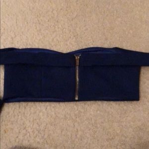 Size large but fits more like a medium/large, the top can be worn off the shoulders or on...