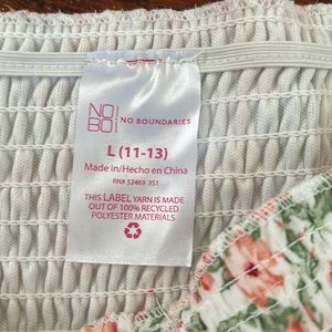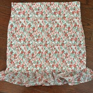 Perfect Spring Two piece set!! The Skirt accentuates the body and it’s more of a high rise skirt. Comes with the matching crop top both are large but crop top feels more like a medium.