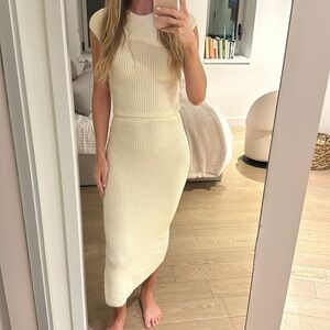 Two Piece Set. Never been worn. Towel like fabric ..can adjust the skirt and top to look like a dress or show more of your stomach.