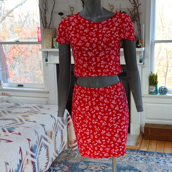 This is a floral print shirt and skirt. The set is in new condition; it was only worn to try on.