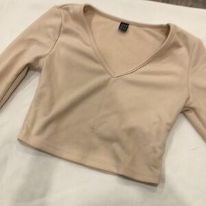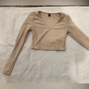 Long Sleeve V Neck Crop Top