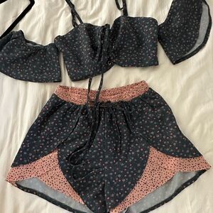 Two Piece Set - Crop Top High Waist Shorts Festival Vibes