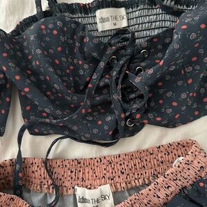 Size medium top & size x small bottoms! (The top was sized up because it ran small) super comfy set!