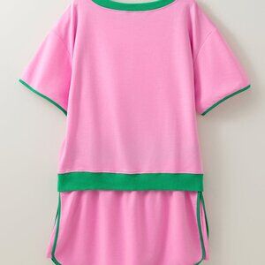 With short sleeves, this set is versatile for various occasions, offering a blend of chic fashion and comfort.