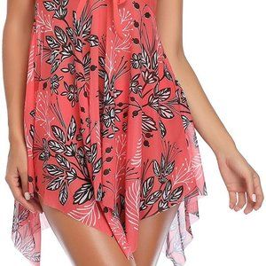 Two Piece Swim Dress Swimsuit for Women Ruched Tummy Control Tankini Set