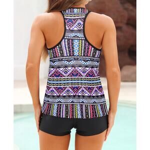 Printed Geometric 2 Piece Tankini Swimsuits: The tankini tops feature with removable padded push up bras, which provide you sturdy support and shaping. Racerback and V neck design will show off your charming curves.
